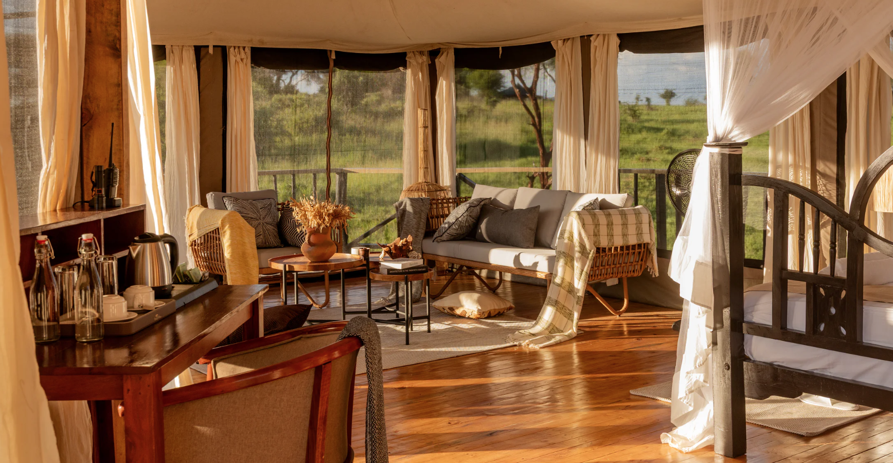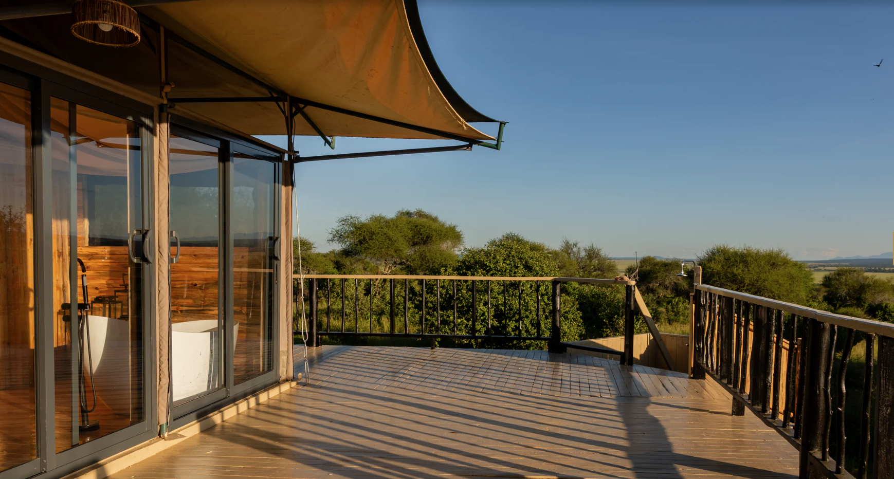 Each room has super wide windows that offer panoramic views of the Tarangire National park. Enjoy your afternoons spotting wildlife from the sun deck before enjoying dinner under the African Sky.