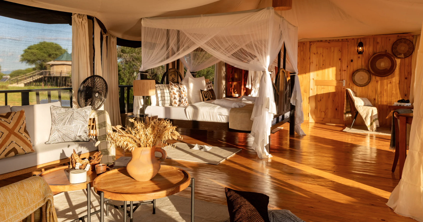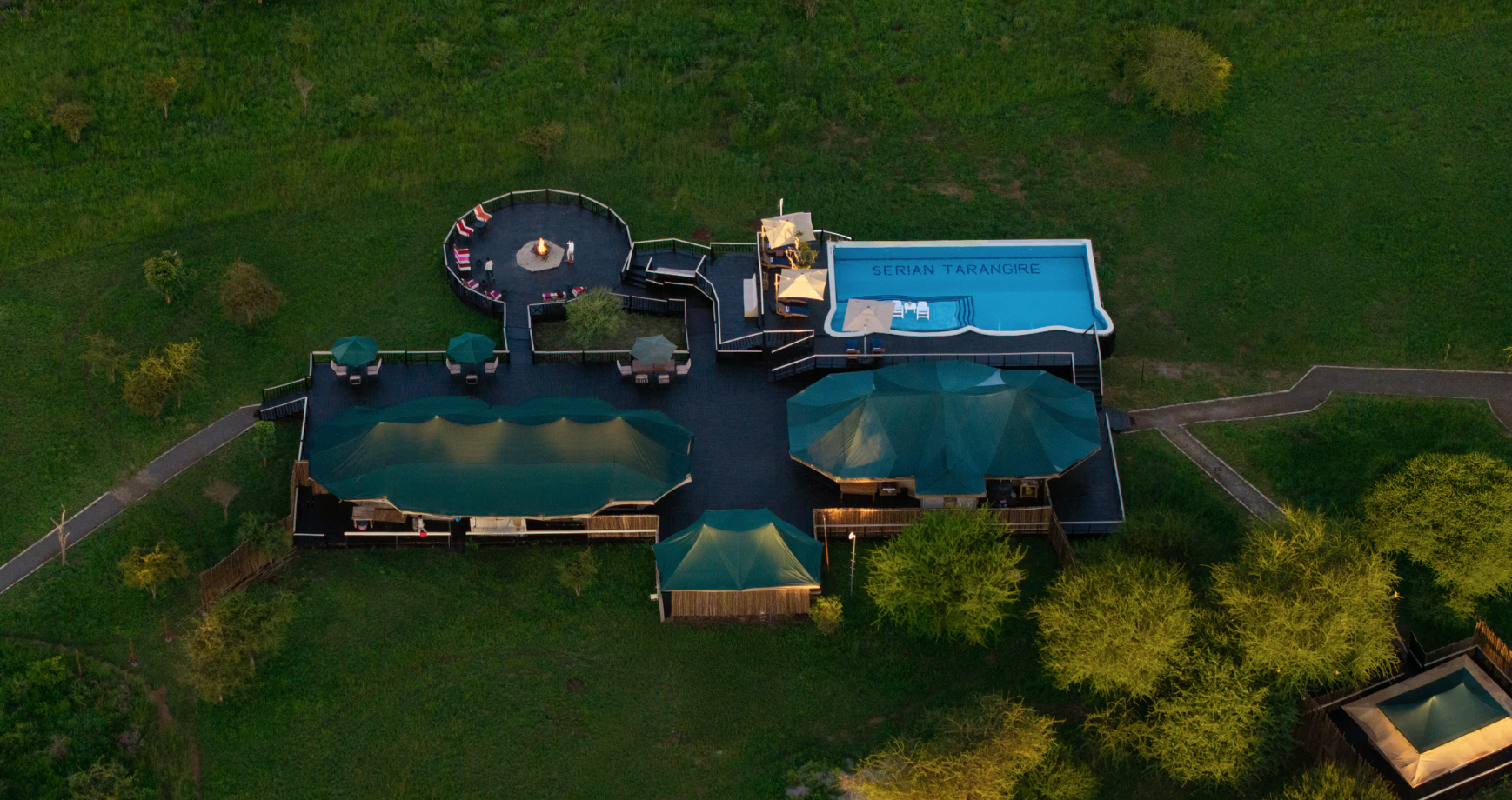 Serrian Tarangire Camp is a luxury thatched camp In the heart of Maasai nation and in a private corner of the Tarangire, in total privacy amongst giant acacia trees and looking out yonder the plat savannah. With spectacular views of the Tarangire National Park, just located near Kuro Airstrip.